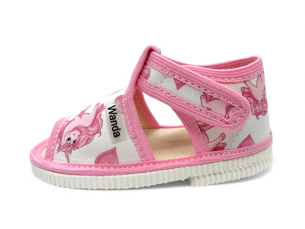 Päta topánočiek je zosilnená flexibilným materiálom a chráni členok proti vykĺbeniu. Podošva v papučkách WANDA je vyrobená zo styroporu, ktorý je hrubý 7 mm a je odolný voči predieraniu. Papučky WANDA sú dobre nazúvateľné , čo zaručuje komfort pri obúvaní a vyzúvaní papučiek.