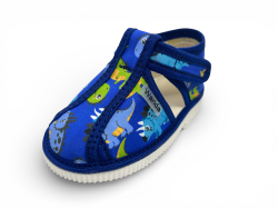 Uzavretá špička + spevnená päta + anatomická stielka/podpora — stabilita a pohodlie, podporuje správny vývoj nohy.