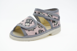 Detské bavlnené papučky Sabínka s motívom v ružovej farbe vybavené regulovaním v prstovej časti pre pohodlné a presné prispôsobenie nožičkám.