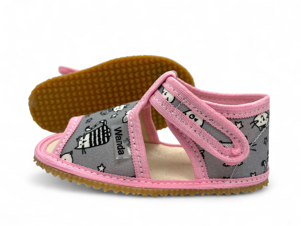 Päta topánočiek je zosilnená flexibilným materiálom a chráni členok proti vykĺbeniu. Podošva v protišmykových papučkách Wanda je vyrobená z kaučukovej gumy, v ktorej sa nešmýka a taktiež je veľmi ohybná a oderuvzdorná. Papučky WANDA sú dobre nazúvateľné vhodné pre širsiu nožičku a vyšší nárt, čo zaručuje komfort pri obúvaní a vyzúvaní papučiek.