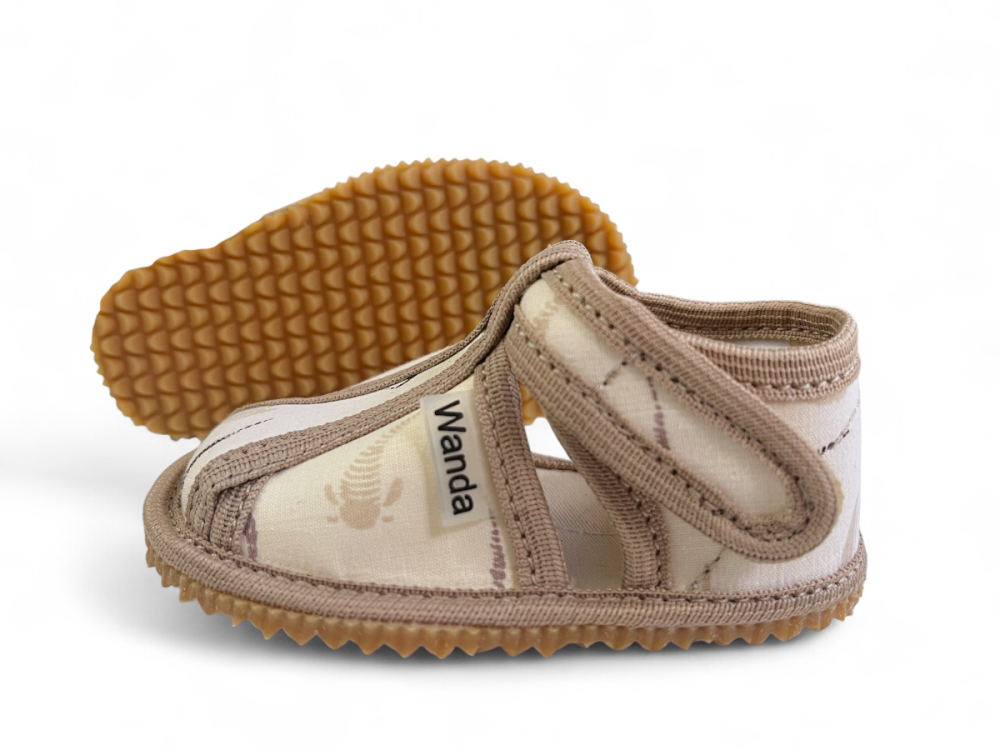Päta topánočiek je zosilnená flexibilným materiálom a chráni členok proti vykĺbeniu. Podošva v protišmykových papučkách Wanda je vyrobená z kaučukovej gumy, v ktorej sa nešmýka a taktiež je veľmi ohybná a oderuvzdorná. Papučky WANDA sú dobre nazúvateľné vhodné pre širsiu nožičku a vyšší nárt, čo zaručuje komfort pri obúvaní a vyzúvaní papučiek.