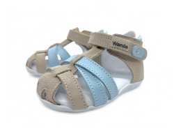 Materiál: Je zdravotne nezávadná, vyrábaná výhradne z certifikovaných polotovarov Európskeho pôvodu. Zvršok je z prírodnej hovädzej alebo teľacej kože. Podšívka v sandálkach Wanda je tiež z prírodnej kože. Stielky sú kožené perforované, čo zaručuje rýchle vyparovanie vodných pár, aby sa noha nepotila. Taktiež sú vybavené podporou klenby pre lepší vývoj detskej nôžky.